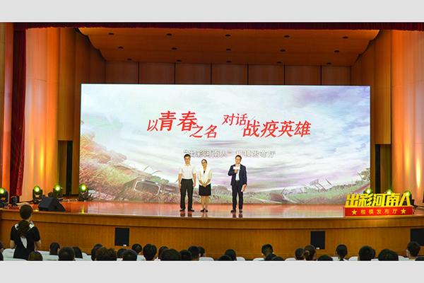 活動(dòng)化疫情危機(jī)為教育契機(jī),以“出彩河南人”楷模發(fā)布廳特別節(jié)目為藍(lán)本,以開放式思政課為主要模式,以先進(jìn)典型事跡為支撐點(diǎn),通過“情景再現(xiàn)+互動(dòng)交流+點(diǎn)評(píng)總結(jié)”的方式,邀請(qǐng)河南省出席全國(guó)抗擊新冠肺炎疫情表彰大會(huì)的先進(jìn)代表與青年學(xué)生交流,分享現(xiàn)場(chǎng)感受,暢談心得體會(huì),為學(xué)生上了一堂愛國(guó)主義教育課、思想政治理論課、科學(xué)精神養(yǎng)成課,引導(dǎo)學(xué)生與時(shí)代同步伐、與人民共命運(yùn)、同祖國(guó)共成長(zhǎng)。此外,活動(dòng)還突出典型人物與學(xué)生互動(dòng),回答學(xué)生現(xiàn)場(chǎng)提問和網(wǎng)絡(luò)留言,引導(dǎo)學(xué)生分享自己和身邊的典型故事,用藝術(shù)形式展示呈現(xiàn),激勵(lì)師生堅(jiān)持遠(yuǎn)大理想、擔(dān)負(fù)時(shí)代使命、書寫絢麗華章,在偉大祖國(guó)復(fù)興的壯闊征程激揚(yáng)青春力量、放飛絢爛夢(mèng)想。