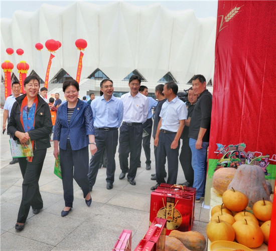 在固城鄉(xiāng)農副產(chǎn)品展臺,談起豐收節(jié),李報中滿臉喜悅。今年他承包的200多畝蘆筍種植基地大豐收,在致富的同時,還吸納十幾名貧困戶在基地務工,帶動他們脫貧致富?!斑@是我們農民自己的節(jié)日,借著豐收節(jié)不僅能推介農副產(chǎn)品,大家還能跟著熱鬧放松,是一舉多得的好事情?!崩顖笾懈吲d地說。