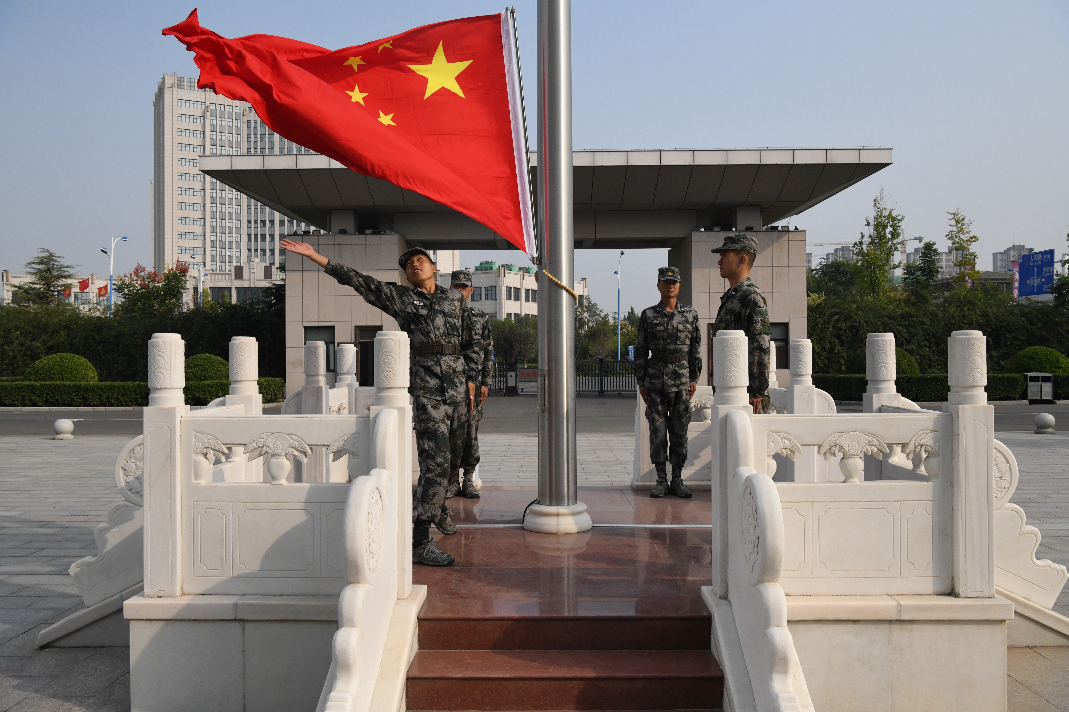 為祖國祝福——周口軍分區(qū)官兵舉行“十一”升起國旗儀式