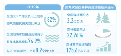 5年砥礪前行,污染防治攻堅(jiān)戰(zhàn)全面推進(jìn)。截至2019年底,“十三五”規(guī)劃綱要確定的生態(tài)環(huán)境領(lǐng)域9項(xiàng)約束性指標(biāo),有8項(xiàng)已提前完成。天藍(lán)水凈地綠的美麗中國(guó)正向我們走來。