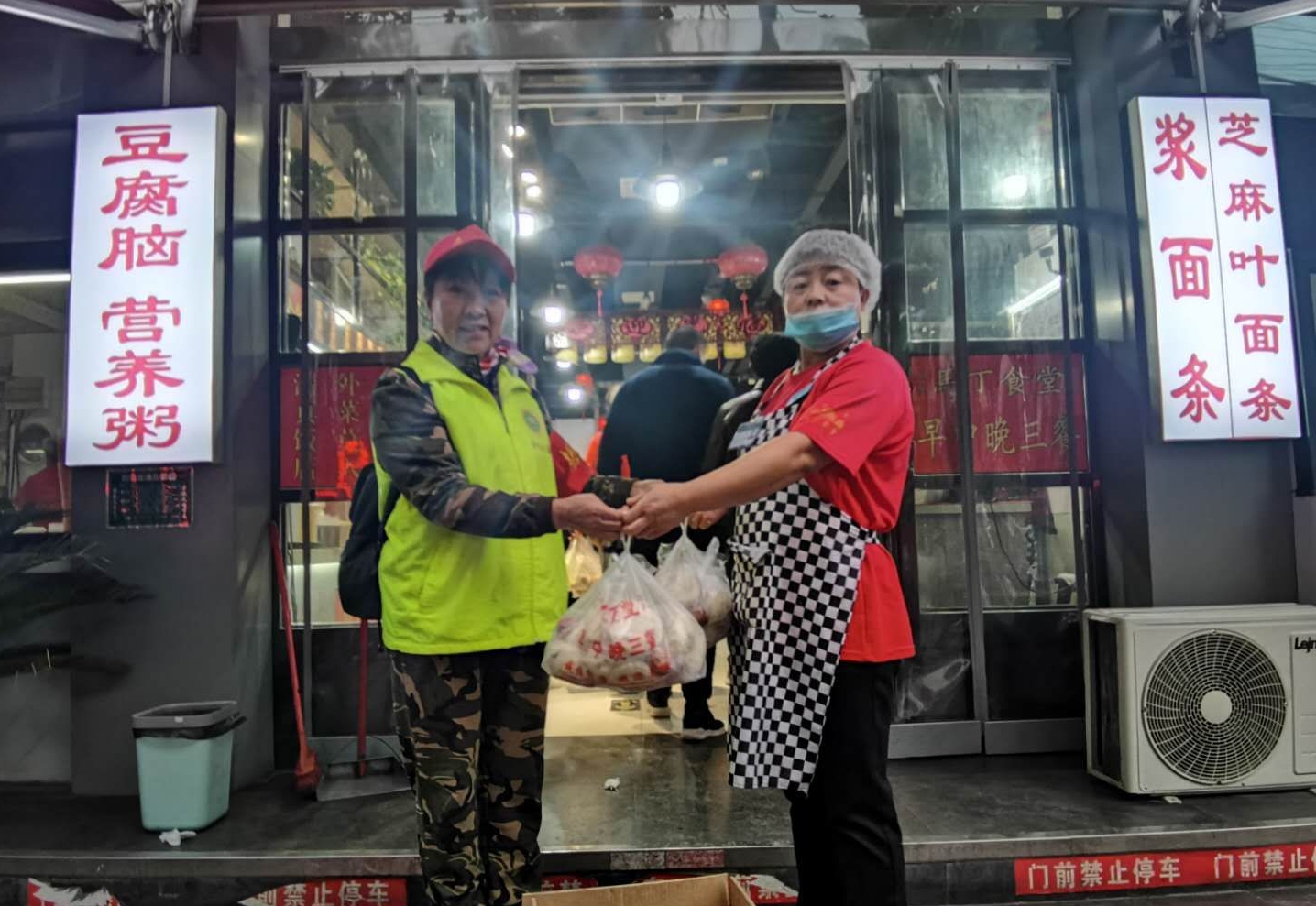 志愿者王新愛和顧連云得知愛心企業(yè)愿意提供早餐,他們早上6點就來到了馬丁餐廳五一路捐贈處取餐。隨后,把早餐陸續(xù)送到志愿者服務(wù)點。吃著美味的早餐,志愿者的心里暖暖的。