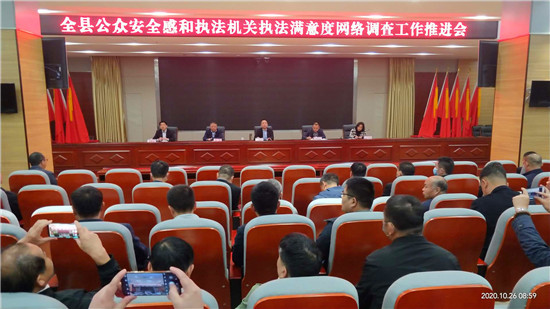 會(huì)上,張國(guó)慶就全縣公眾安全感和執(zhí)法機(jī)關(guān)執(zhí)法滿意度網(wǎng)絡(luò)調(diào)查工作,進(jìn)行再安排、再部署,并針對(duì)調(diào)查方式方法進(jìn)行了說(shuō)明。會(huì)議要求,公眾安全感調(diào)查是全省政法綜治工作考評(píng)的一項(xiàng)重要指標(biāo),是對(duì)各地區(qū)一年來(lái)政法綜治工作、平安建設(shè)工作成效的集中反映。各級(jí)各單位要站在講政治的高度,進(jìn)一步統(tǒng)一思想,高度重視,明確責(zé)任,把公眾安全感和執(zhí)法機(jī)關(guān)執(zhí)法滿意度網(wǎng)絡(luò)調(diào)查工作作為當(dāng)前重中之重的工作來(lái)抓,進(jìn)一步加強(qiáng)全縣綜治和平安建設(shè)工作,全力以赴做好提升公眾安全感和執(zhí)法機(jī)關(guān)執(zhí)法滿意度工作。
