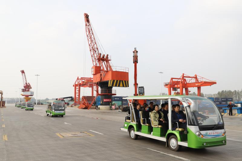 在中心港碼頭,工作人員向來賓詳細(xì)介紹了周口的航運總體情況,以及在周口大力發(fā)展臨港經(jīng)濟的大背景下,周口港區(qū)臨港產(chǎn)業(yè)規(guī)劃布局和發(fā)展現(xiàn)狀。隨后,來賓乘坐觀光車,到港池前沿近距離了解碼頭運營情況,親身感受碼頭繁忙的作業(yè)現(xiàn)場同時,來賓們向工作人員了解碼頭貨源、運量、運輸費用等問題,工作人員詳細(xì)解答。大家紛紛贊嘆:“想不到中原腹地?fù)碛腥绱藘?yōu)越的水運條件,還建設(shè)了規(guī)模宏大的內(nèi)河港口,周口臨港經(jīng)濟發(fā)展氣勢如虹,前景一片光明!”②9