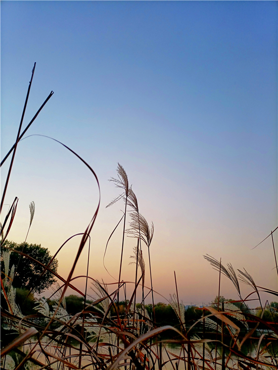 深秋時節(jié),瑟瑟秋風吹白了蘆花,吹寒了秋水,夕陽的余暉映照在水面上,唯美得令人驚嘆。