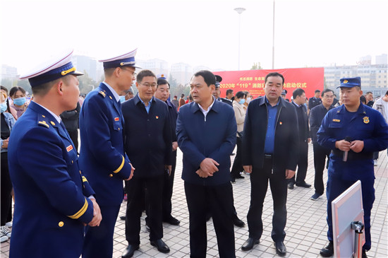 11月11日,鄲城縣在世紀(jì)廣場(chǎng)舉行2020年消防宣傳月活動(dòng)啟動(dòng)儀式,目的是進(jìn)一步提高全民消防安全意識(shí),促使“關(guān)注消防 生命至上”的主題深入人心,廣泛發(fā)動(dòng)社會(huì)各界關(guān)注消防、參與消防,營(yíng)造良好的宣傳氛圍,預(yù)防和減少火災(zāi)事故發(fā)生,確保人民群眾生命財(cái)產(chǎn)安全。縣長(zhǎng)李全林出席會(huì)議并宣布消防宣傳月活動(dòng)啟動(dòng),縣委常委、常務(wù)副縣長(zhǎng)胡友濤主持會(huì)議,縣領(lǐng)導(dǎo)謝超、王彪、陳鳳祥、李素梅及縣公安局政委趙紅建參加會(huì)議。