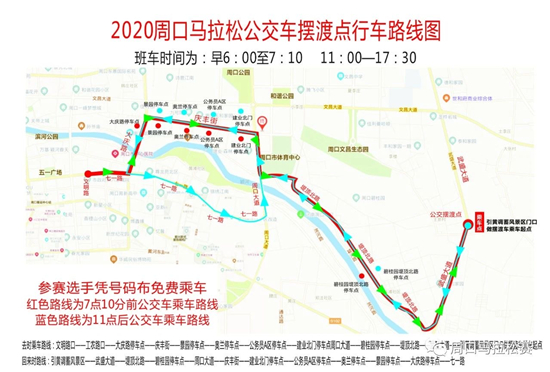 此外, 記者還從大賽組委會獲悉,2020周口馬拉松比賽公交車擺渡點(diǎn)行車路線圖也已公布,參賽選手憑號碼布可以免費(fèi)乘車,去時乘車路線為:文明路口——工農(nóng)路口——大慶路停車點(diǎn)——慶豐街——景園停車點(diǎn)——奧蘭停車點(diǎn)——公務(wù)員A區(qū)停車點(diǎn)——建業(yè)北門停車點(diǎn)周口大道——碧桂園停車點(diǎn)——堤頂北路——武盛大道——引黃調(diào)蓄風(fēng)景區(qū)門口擺渡車乘車起點(diǎn);回來時路線為:引黃調(diào)蓄風(fēng)景區(qū)——武盛大道——堤頂北路——碧桂園停車點(diǎn)——周口大道——慶豐街——建業(yè)北門停車點(diǎn)——公務(wù)員A區(qū)停車點(diǎn)——奧蘭停車點(diǎn)——景園停車點(diǎn)——大慶路停車點(diǎn)——七一路,其中班車運(yùn)行時間為早6:00至7:10,11:00至17:30。因場地受限,活動當(dāng)天的停車區(qū)域分為兩處,一是引黃調(diào)蓄風(fēng)景區(qū)西門南北兩側(cè)便道;二是風(fēng)景區(qū)西門向南路西600米處東西無名路。