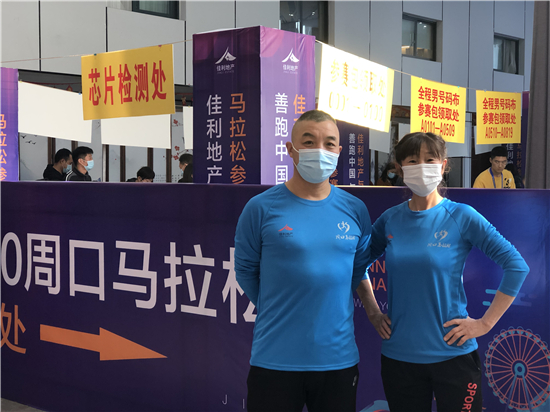 活動現(xiàn)場前來領(lǐng)取賽前裝備的人源源不斷,有的是朋友結(jié)伴而來,有的趁工作間隙而來,還有的帶著孩子前來,十分熱鬧。王勝利先生今年是第四次參加周口馬拉松賽了,他說:“2017年我跑了5小時30分,2018年是4小時28分,2019年跑了4小時17分,通過這幾年堅(jiān)持不懈地鍛煉,今年我想爭取跑到4個小時以內(nèi),不跟別人比,主要是不斷地自我超越!”今年的周口馬拉松賽還吸引了許多“都市麗人”參加,劉女士就是其中一員,“我今年36歲了,平時就非常喜愛健身、長跑,今年是我第一次報(bào)名參加馬拉松賽,希望能夠挑戰(zhàn)自己。”她告訴記者。