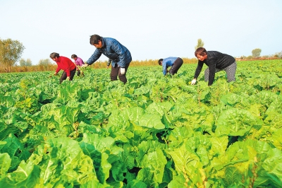 浚縣小河鎮(zhèn)張劉莊村村民喜收白菜本報記者郭戈攝