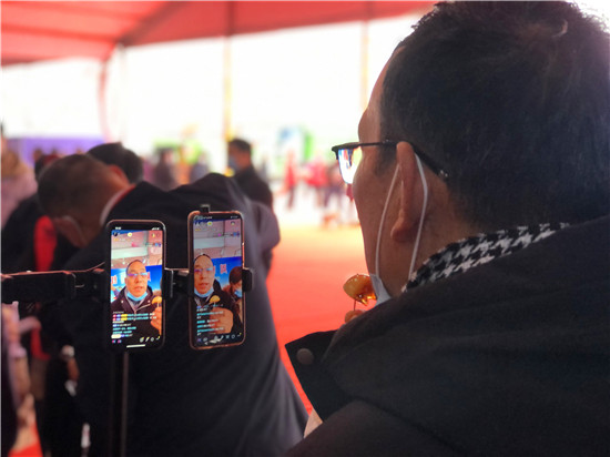 28日早上7時(shí)許,周口網(wǎng)紅俱樂(lè)部的網(wǎng)紅們和工作人員就開始為今天的直播做準(zhǔn)備,早早把直播設(shè)備搬到現(xiàn)場(chǎng),進(jìn)行調(diào)試。10時(shí)左右,周商產(chǎn)品展示展覽活動(dòng)現(xiàn)場(chǎng)人頭攢動(dòng),熱鬧非凡,來(lái)自周口本地的9位網(wǎng)紅們陸續(xù)架好手機(jī)直播設(shè)備,打開補(bǔ)光燈,開始直播?,F(xiàn)場(chǎng)的9位網(wǎng)紅各有特色,有打扮時(shí)髦的美女主播,有歌聲出眾的中年大叔,年齡最大的網(wǎng)紅是今年65歲的鹿邑大爺。網(wǎng)紅們一手拿著周口的蜂蜜、空心掛面、麻花、粉條、醬豆等土特產(chǎn),一邊對(duì)著手機(jī)屏幕里的粉絲熱情地展示和介紹起來(lái),有的還直接進(jìn)行現(xiàn)場(chǎng)吃播,不時(shí)與網(wǎng)友進(jìn)行唱歌、聊天互動(dòng),吸引了不少行人前來(lái)觀看?!霸瓉?lái)在抖音上看過(guò)網(wǎng)紅帶貨,但沒(méi)見(jiàn)過(guò)真人, 今天終于見(jiàn)到真實(shí)的網(wǎng)紅了!感覺(jué)很有意思!”前來(lái)觀展的市民劉女士說(shuō)。