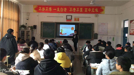 扶溝縣高中二(6)班學(xué)生楊毅說:“通過學(xué)校開展的學(xué)憲法活動(dòng),了解了很多和生活息息相關(guān)的法律知識(shí),增強(qiáng)了法治觀念,我要做尊法、守法、護(hù)法的好少年?!?/p>