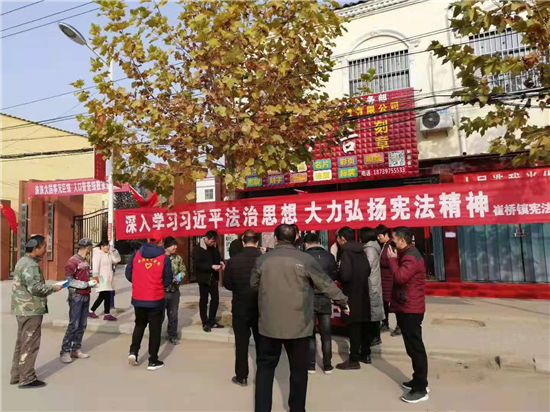 12月4日是第七個(gè)國(guó)家憲法宣傳日。為深入學(xué)習(xí)宣傳習(xí)近平法治思想,努力營(yíng)造和諧穩(wěn)定的鄉(xiāng)村環(huán)境和法治氛圍,推動(dòng)全鎮(zhèn)“深入學(xué)習(xí)宣傳習(xí)近平法治思想、大力弘揚(yáng)憲法精神”。崔橋鎮(zhèn)組織司法所、派出所等采取多種形式,開展了憲法宣傳。