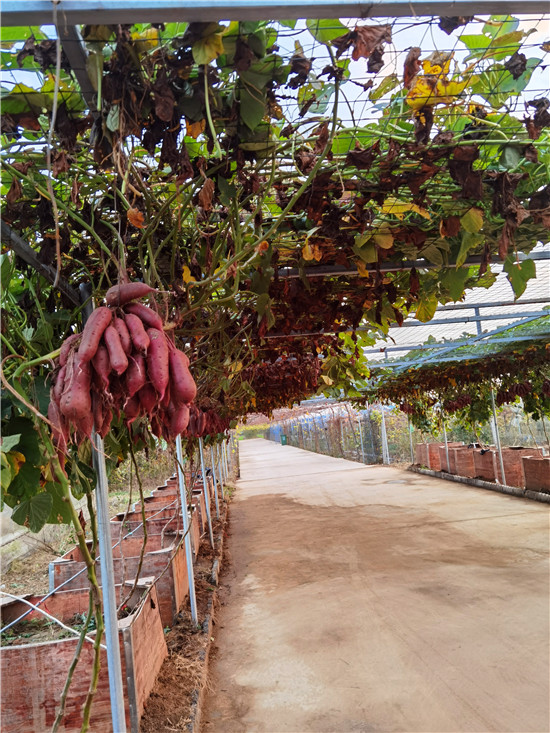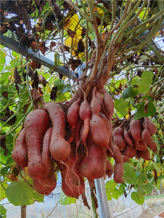 西華縣農(nóng)科所積極開展“空中結(jié)薯”試驗(yàn)種植研究,并取得成功?!翱罩薪Y(jié)薯”采取嫁接技術(shù),選用旋花科植物牽牛作砧木,脫毒薯苗作接穗嫁接而成,嫁接成活后栽到土壤里,搭建棚子,加強(qiáng)薯苗水肥管理,每株插一根小竹木桿,促進(jìn)薯苗快速生長上棚,在棚上吊花盆,盆內(nèi)放蛭石,生長到掤上的薯秧壓到花盆里,加強(qiáng)水肥管理。90天結(jié)薯,進(jìn)入10月份把花盆去掉。該技術(shù)打破傳統(tǒng)栽培方式,主要為公園、科技園區(qū)、農(nóng)業(yè)生態(tài)觀光園、家庭庭院內(nèi)培植,有很好的科研價(jià)值、觀賞價(jià)值和農(nóng)業(yè)推廣價(jià)值。周口日報(bào)·周道客戶端記者李鳳霞 攝