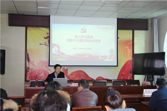“黨的十九屆五中全會(huì)是在我國(guó)將進(jìn)入新發(fā)展階段、實(shí)現(xiàn)中華民族偉大復(fù)興正處于關(guān)鍵時(shí)期召開的一次具有全局性、歷史性意義的會(huì)議?!?2月19日,扶溝縣審計(jì)局召開學(xué)習(xí)貫徹十九屆五中全會(huì)精神宣講大會(huì),由局黨組書記翟連生作宣講報(bào)告,該局全體干部職工共40余人參加了宣講會(huì)。