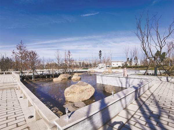 2020年12月31日,中心城區(qū)水系綜合治理書(shū)香文苑園區(qū)完工,向市民開(kāi)放。書(shū)香文苑園區(qū)位于文昌大道與政通路交叉口西南角,是洼沖溝水系治理的一部分。園區(qū)內(nèi)突出周口毛筆之鄉(xiāng)文化元素、建設(shè)生態(tài)綠色林帶、布置觀景濱水平臺(tái)等內(nèi)容,建有兩處廣場(chǎng)、景觀旱噴、濱水平臺(tái)、文化地雕等設(shè)施,為市民增加一處活動(dòng)休閑的地方。記者 孫安平 攝