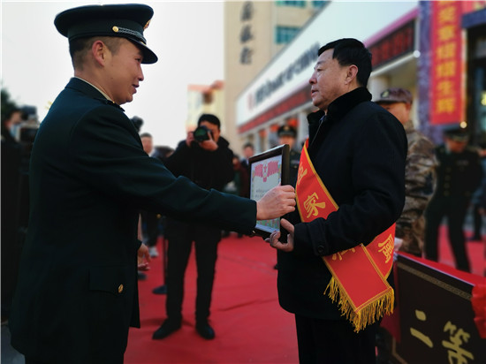 “這么冷的天沒(méi)想到軍地領(lǐng)導(dǎo)親自上門(mén)送喜報(bào),還定制了功臣之家的光榮牌匾……”看到送喜報(bào)“隊(duì)伍”的到來(lái),趙金豹激動(dòng)地連說(shuō)到。