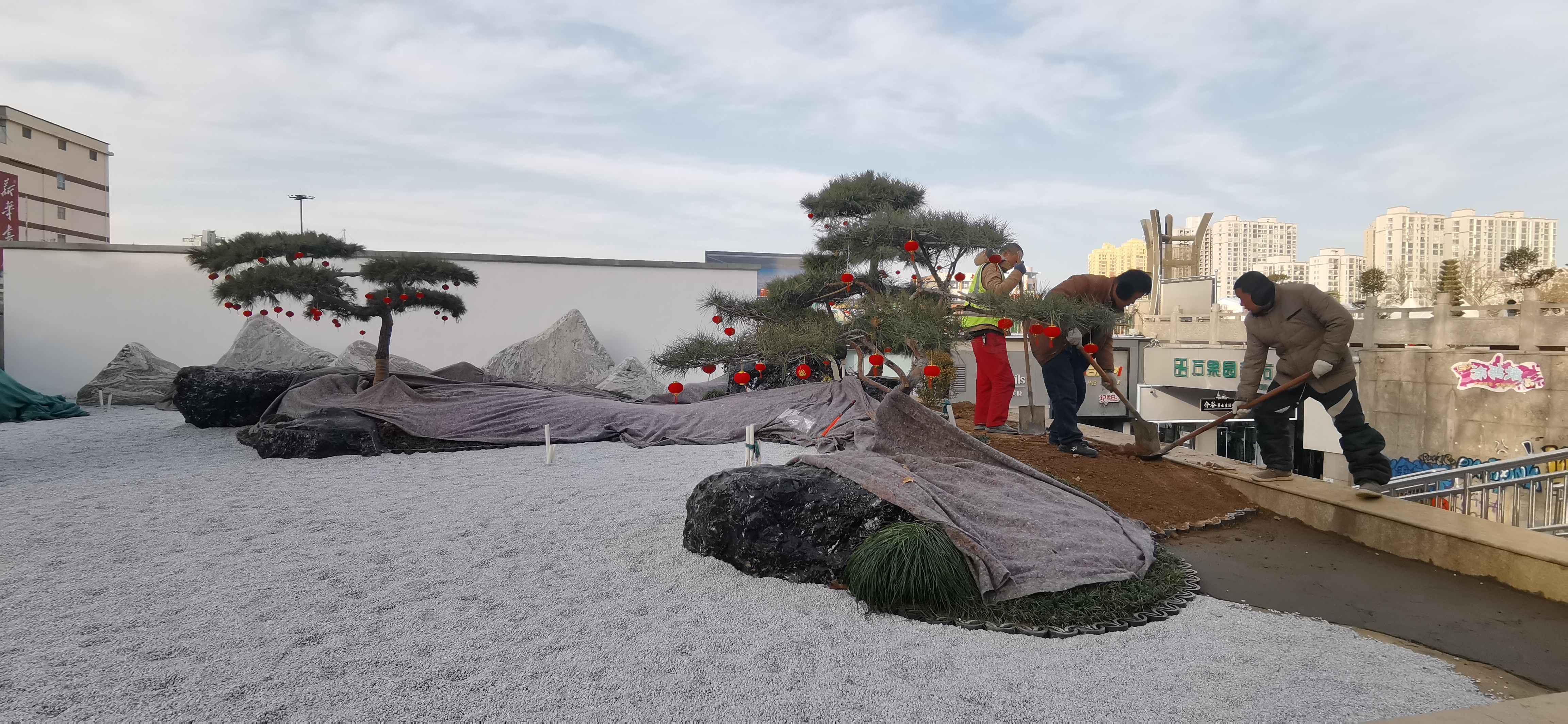 1月9日,工人在中心城區(qū)五一文化廣場(chǎng)綠化提升改造現(xiàn)場(chǎng)緊張工作。記者在廣場(chǎng)南側(cè)看到,東西兩端的圍擋己拆除,小而精的精品綠化工程顯現(xiàn)。兩處綠化景觀最后面是一個(gè)景墻,景墻再往前是一片錯(cuò)落有致的景石,給人一種峰巒疊嶂的感覺(jué),再往前是由造型各異的迎客松、草坪、綠色植物等。②18