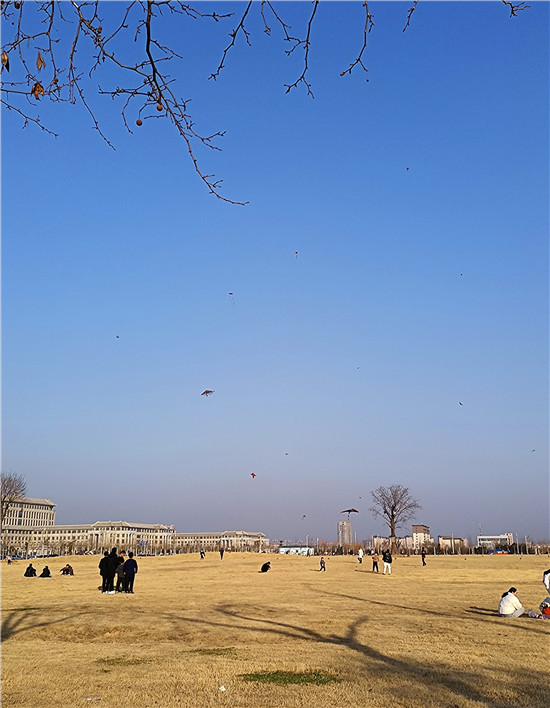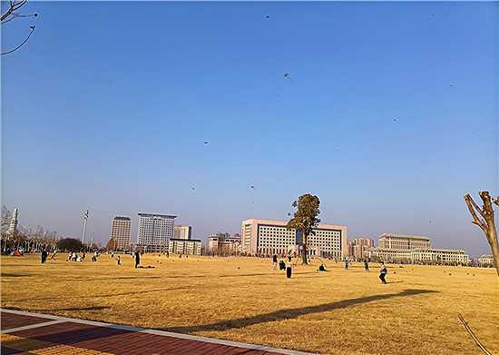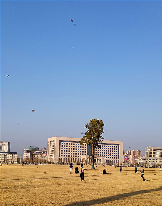 2月5日,我市天氣晴朗,不少市民帶著孩子來(lái)到戶外,享受溫暖的陽(yáng)光、和煦的春風(fēng)、與孩子一起放紙鳶的天倫之樂(lè)。