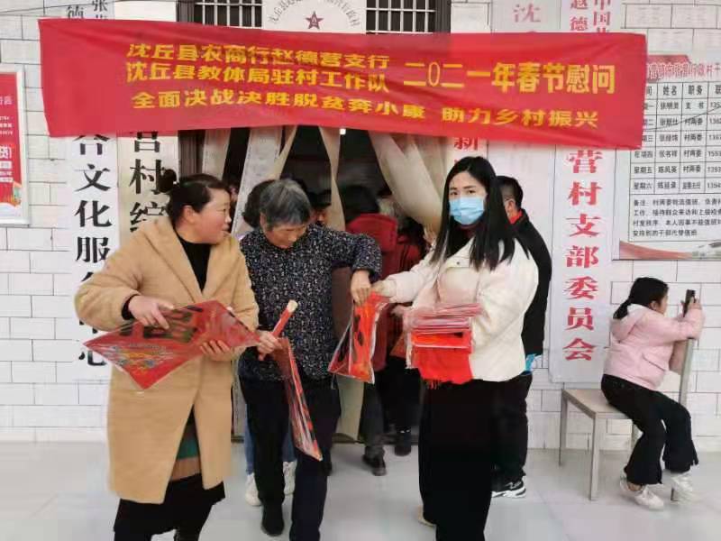 村室外邊,縣教體局駐村工作隊長李小兵、村干部不停地把一幅幅火紅的春聯(lián)遞到村民的手上,并和大家互道祝福:“鄉(xiāng)親們,新年好,牛年好運(yùn)?!?/p>