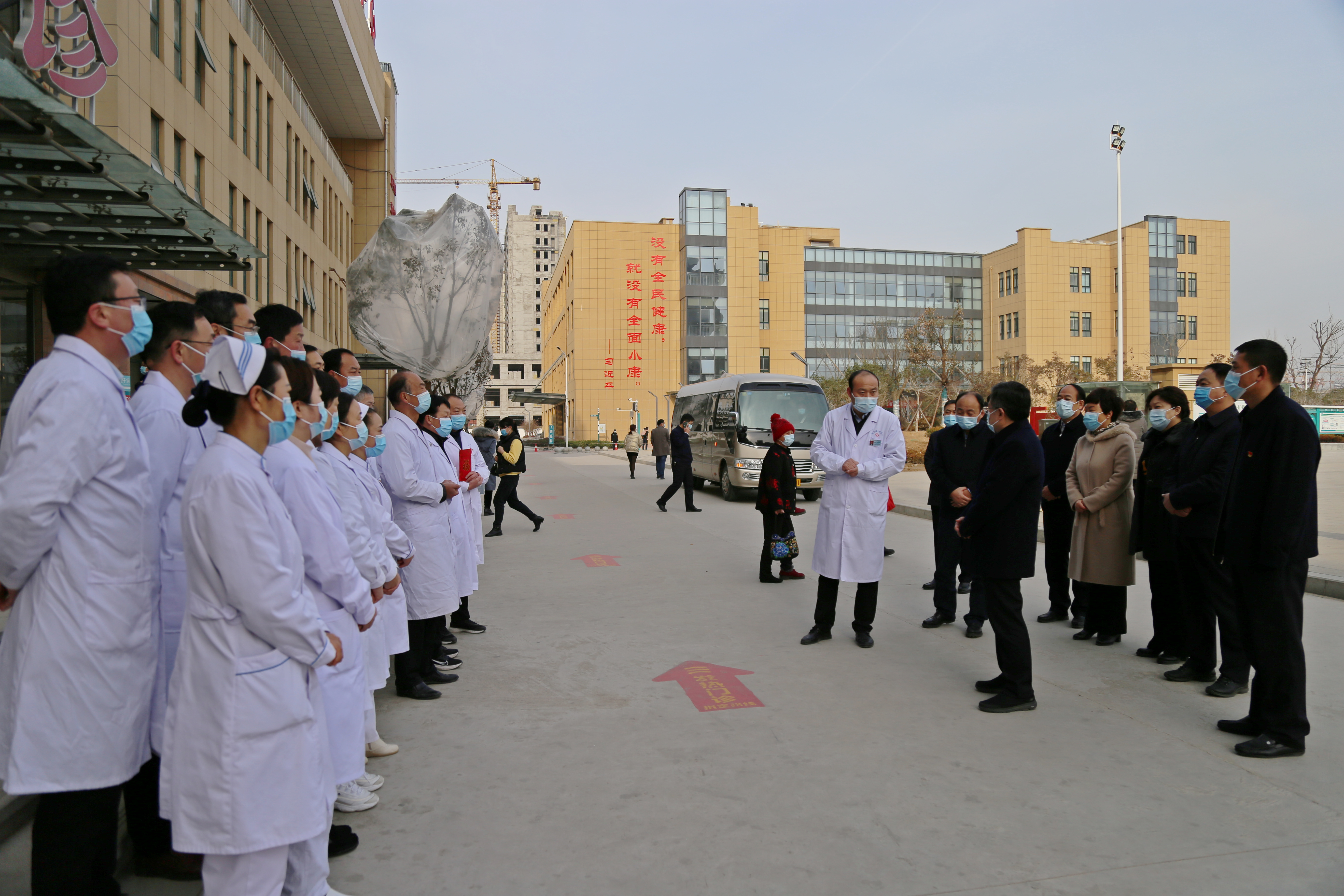 白衣執(zhí)甲、逆行出征。在縣人民醫(yī)院,皇甫立新、劉國慶代表縣四個班子和全縣人民向堅守在一線的醫(yī)護(hù)人員表示衷心感謝并致以崇高敬意,祝大家新年快樂、闔家歡樂?;矢α⑿抡f,2020年,是極不平凡的一年,自新冠肺炎疫情發(fā)生以來,全縣廣大醫(yī)護(hù)人員舍小家顧大家,義無反顧的沖鋒在救治一線,不畏困難和危險,連續(xù)作戰(zhàn),為保障人民生命安全和身體健康作出了重要貢獻(xiàn)。希望全縣醫(yī)護(hù)人員繼續(xù)發(fā)揚(yáng)人道主義精神和救援精神,提高救治水平,扎實做好冬春季疫情防控工作,并再三叮囑一線醫(yī)務(wù)人員一定要合理安排時間,注意勞逸結(jié)合,做好自身防護(hù)。同時叮囑醫(yī)院負(fù)責(zé)人要做好醫(yī)護(hù)人員的后勤保障工作,確保大家無后顧之后,全身心投入到工作去中。