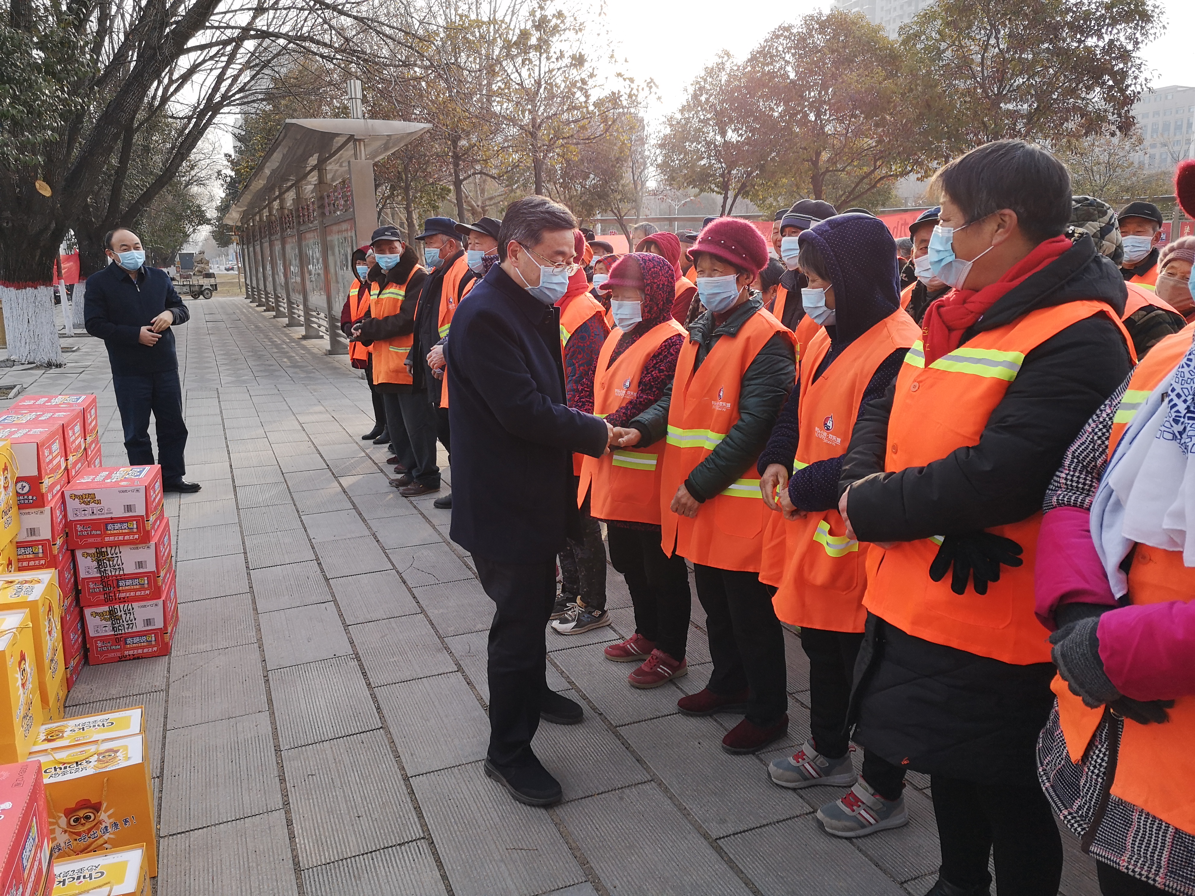 在行政新區(qū)全民健身廣場,皇甫立新、劉國慶同環(huán)衛(wèi)工人們一一握手,并代表縣四個班子向堅守一線的環(huán)衛(wèi)工人致以新春的祝福,對他們在過去一年里付出的辛勤勞動表示衷心感謝。皇甫立新說,一年來,環(huán)衛(wèi)工人們起早貪黑、兢兢業(yè)業(yè),為改善居民生活環(huán)境和提升城市形象付出很多心血和汗水,取得了良好效果,城區(qū)環(huán)境和城市面貌有了很大改善,得到了社會各界的一致好評,希望大家繼續(xù)發(fā)揚(yáng)愛崗敬業(yè)、無私奉獻(xiàn)的精神,把縣城衛(wèi)生打掃的更加干凈、整潔,為全縣人民歡度春節(jié)創(chuàng)造一個干凈舒適愉快的環(huán)境。
