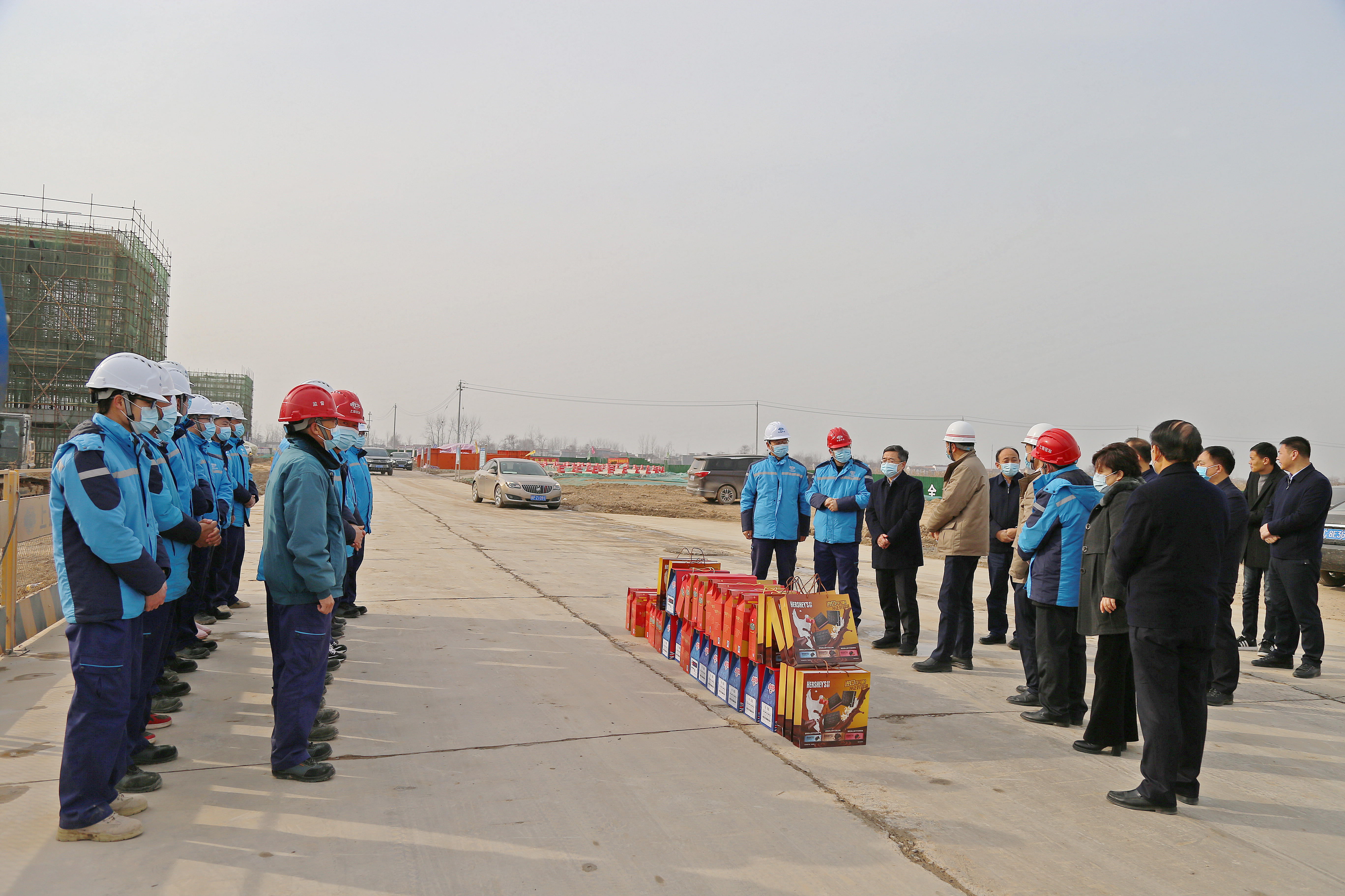 在安鋼產(chǎn)能置換項目部和一期一步施工現(xiàn)場,皇甫立新、劉國慶代表縣四個班子和全縣人民向奮戰(zhàn)在安鋼產(chǎn)能置換一線的建設(shè)者們表示感謝,并致以新春的祝福?;矢α⑿抡f,安鋼產(chǎn)能置換項目自落戶沈丘以來,項目推進(jìn)如此之快,可謂是日新月異,氣勢恢宏,振奮人心,這既離不開省委省政府、市委市政府的關(guān)心支持,更離不開建設(shè)者們的辛苦付出。希望廣大建設(shè)者能夠繼續(xù)發(fā)揚(yáng)不怕苦不怕累的敬業(yè)精神,以時不我待的決心,全面加快項目建設(shè),確保如期實現(xiàn)2021年5月份建成出鋼的施工目標(biāo),繼續(xù)為周口、沈丘經(jīng)濟(jì)社會高質(zhì)量發(fā)展作出新的貢獻(xiàn)。