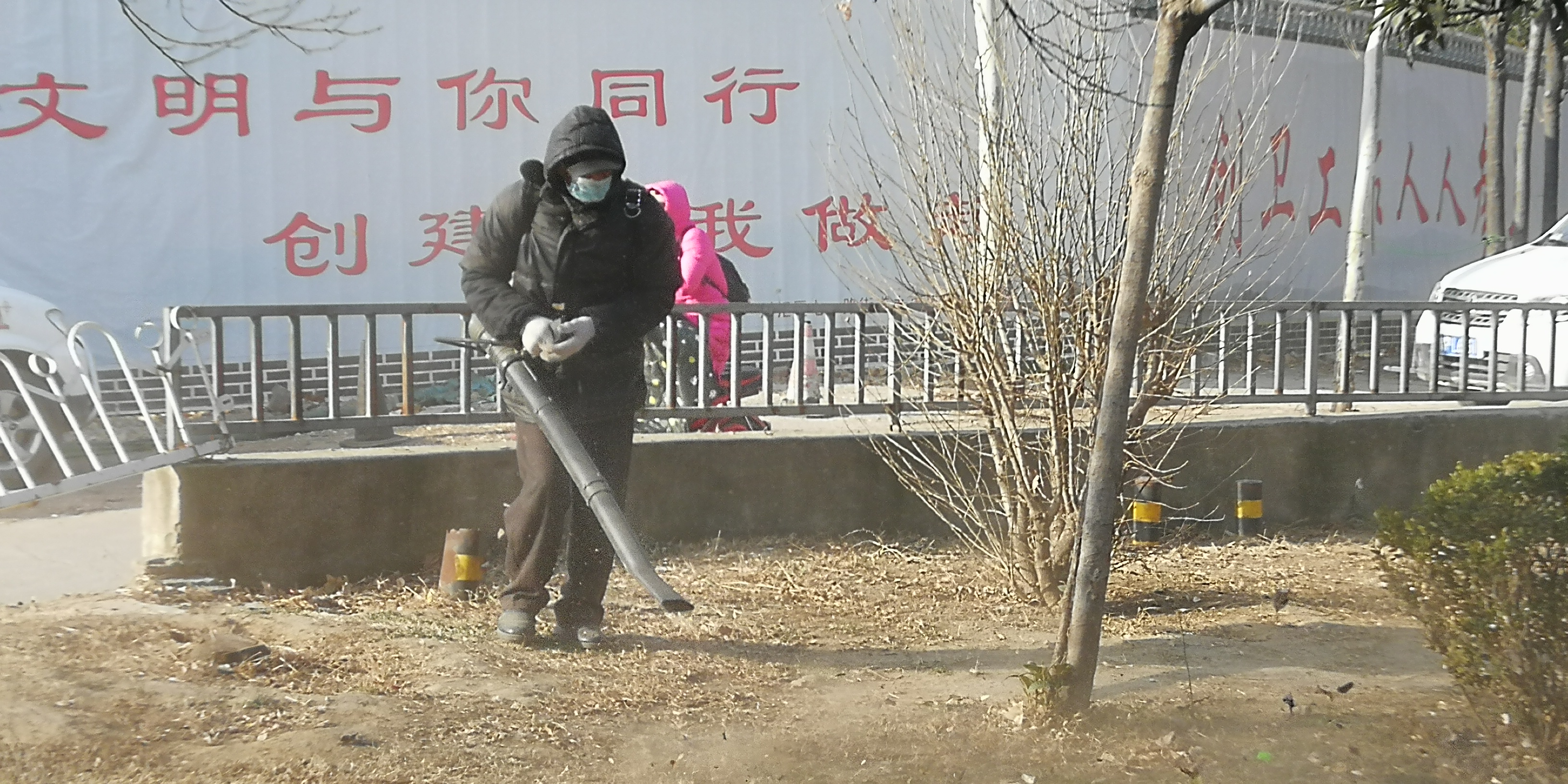 2月11日,大年三十。在川匯區(qū)濱河路上,工作人員背著吹風機清理游園內(nèi)的落葉和垃圾。工作人員介紹,這樣便于更快更好地工作。(周口日報·周道客戶端記者 馬月紅)②7