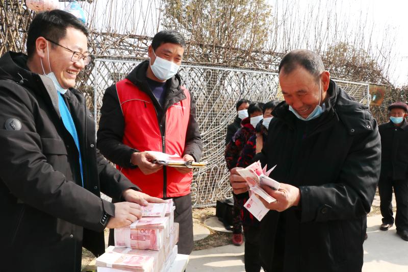 宋傳東、宋建超、王龍、魏端明、張鳳云......村民們領(lǐng)過(guò)錢(qián),歡笑著離開(kāi)現(xiàn)場(chǎng)。當(dāng)日,合作社向村民們發(fā)放了150萬(wàn)元的租金、工資和分紅。涉及城郊鄉(xiāng)池莊行政村的宋莊、毛莊、王菜園和大于行政村的常莊、楊莊等9個(gè)自然村,共計(jì)400戶村民。