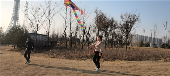 近日,我市氣溫明顯回暖,2月18日,位于周口大道東側(cè)的東方園林內(nèi),前來游玩的市民絡(luò)繹不絕,許多家長(zhǎng)帶著孩子們紛紛放飛風(fēng)箏,感受春日的美好,斑斕的風(fēng)箏為早春增色不少。