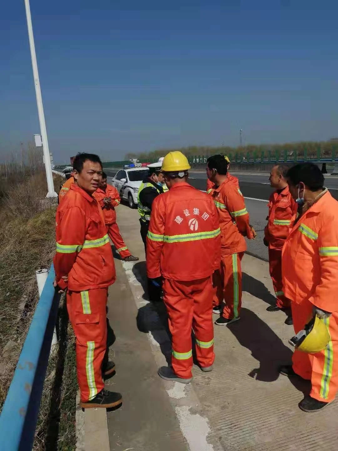 接警后,距離事發(fā)地點(diǎn)最近的周口高速二大隊(duì)項(xiàng)城中隊(duì)值班民警迅速趕往現(xiàn)場(chǎng)。民警到達(dá)現(xiàn)場(chǎng)后了解到,一輛專(zhuān)業(yè)運(yùn)輸肉牛貨車(chē)從北方到南方運(yùn)輸肉牛,有兩頭牛在行駛途中突然受驚撞破了車(chē)上鋼管?chē)鷻谔搅烁咚俟飞?,其中一頭又越過(guò)中央隔離護(hù)欄跑到了對(duì)向車(chē)道。一輛行駛中轎車(chē)躲避不及與牛發(fā)生碰撞,導(dǎo)致車(chē)輛嚴(yán)重?fù)p壞,牛被撞死。另一頭沿著高速公路護(hù)欄來(lái)回折騰著跑,過(guò)路車(chē)輛紛紛躲避,形勢(shì)也十分危險(xiǎn)。民警立即指揮來(lái)車(chē)暫停,招呼司機(jī)等人把牛趕下高速公路邊溝,減少危險(xiǎn),然后分段站在護(hù)欄處把守,讓有捉牛經(jīng)驗(yàn)的車(chē)主和司機(jī)在邊溝內(nèi)捉牛。