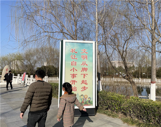 2017年8月18日,周口市委、市政府隆重召開創(chuàng)建全國綠化模范城、國家園林城市、全國雙擁模范城、國家衛(wèi)生城市、全國文明城市提名城市工作動員大會。此后,干部群眾同心同德、共同努力,我市的城市面貌和市民的精神風貌發(fā)生了巨大變化。2020年12月16日,周口市第四屆人民代表大會常務(wù)委員會第二十七次會議通過了《周口市文明行為促進條例》,該條例已于2021年1月1日實施。條例中第十四條規(guī)定公民應(yīng)當文明旅游,應(yīng)做到服從景區(qū)景點管理,愛護景區(qū)景點公共設(shè)施;不損害名勝古跡、珍貴文物、古樹名木及其他重要歷史文化遺產(chǎn),不刻畫、不涂污、不攀爬,不違反規(guī)定拍照、攝像、觸摸。在文明出游漸成市民自覺和共識的基礎(chǔ)上,又從制度層面進一步引導(dǎo)市民樹立文明出游從我做起、從現(xiàn)在做起的意識。③52021年1月,我市已順利入選全國文明城市提名城市。向全國文明城市沖擊,我們信心百倍。