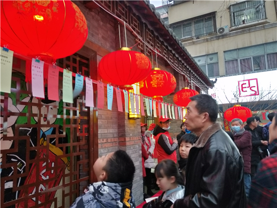 在現(xiàn)場(chǎng),周口市慈孝文化促進(jìn)會(huì)的志愿者忙著掛謎條,為市民兌換獎(jiǎng)品,為了活動(dòng)的成功舉行,他們整整忙了一天?!斑@兩年因?yàn)橐咔樵颍蠹叶加X得年味越來越淡,作為志愿者,我們特別愿意發(fā)揮優(yōu)勢(shì),為豐富市民文化生活提供服務(wù)?!敝芸谑写刃⑽幕龠M(jìn)會(huì)會(huì)長孫彩云說。②7