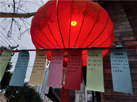 在元宵佳節(jié)到來之際,為倡導(dǎo)文明過節(jié)理念,營造和諧節(jié)日氛圍,2月26日晚,在交通大道與文明路交叉口西北角市民驛站舉行的趣味元宵節(jié)猜燈謎活動(dòng)贏得了市民的熱情參與。