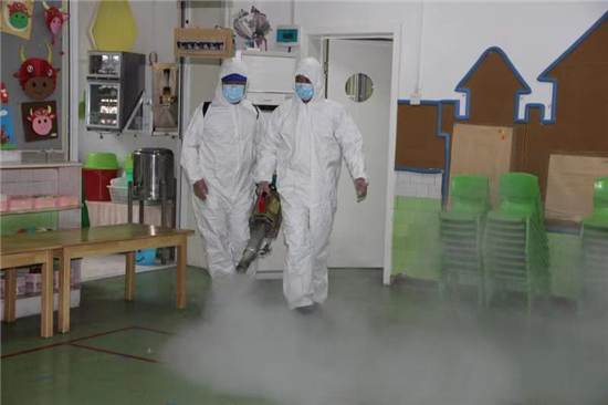 2月27日下午, 周口市市直幼兒園聯(lián)系周口市藍(lán)天救援隊(duì)專業(yè)消殺人員,對幼兒園的公共區(qū)域環(huán)境、大型玩具、走廊、活動(dòng)室等場所逐步實(shí)施消殺,重點(diǎn)對樓道、樓梯扶手、衛(wèi)生間等關(guān)鍵區(qū)域?qū)嵤┟芗?,做到全面、徹底、不留死角?/p>