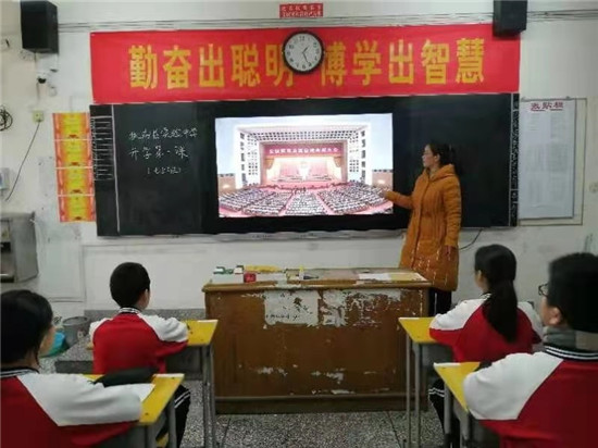“在浙江省嘉興市有一處美麗的風(fēng)景——南湖,不僅以秀麗的煙雨風(fēng)光享有盛名,而且還因中國(guó)共產(chǎn)黨第一次全國(guó)代表大會(huì)在這里勝利閉幕而備受世人矚目……”3月1日上午8時(shí)30分,記者在扶溝縣回族小學(xué)看到,學(xué)校全體師生正在同一時(shí)間觀看“開學(xué)第一課”。