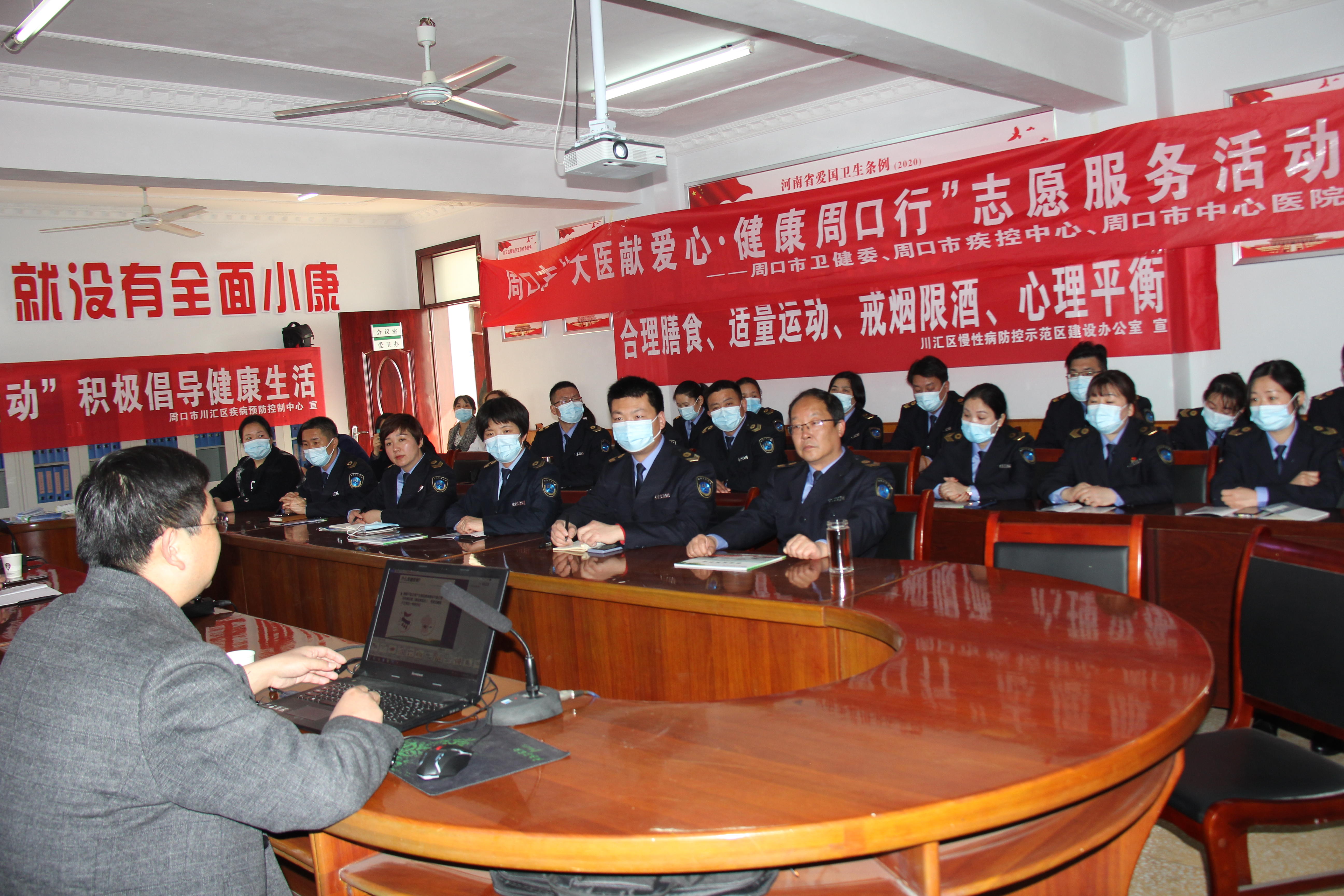 為深入開展“河南省新時代文明實踐推動周”活動,3月4日下午,由川匯區(qū)衛(wèi)健委組織,市健康教育所、市中心醫(yī)院、區(qū)健康教育所、區(qū)疾病預(yù)防控制中心、區(qū)慢性病防控示范區(qū)建設(shè)辦公室、人和社區(qū)衛(wèi)生服務(wù)中心等單位承辦的“新時代文明實踐推動周”“健康周口行 大醫(yī)獻(xiàn)愛心”健康科普活動走進(jìn)川匯區(qū)衛(wèi)生計生監(jiān)督所。講座邀請周口市中心醫(yī)院內(nèi)分泌專家楊東輝為川匯區(qū)衛(wèi)生計生監(jiān)督所干部職工送上“糖尿病如何科學(xué)防治”健康科普知識講座。