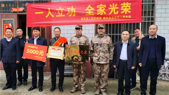 一人立功,全家光榮。3月19日上午,鹿邑縣試量鎮(zhèn)后楊樓行政村鑼鼓喧天,熱鬧非凡,鹿邑縣人武部、縣退役軍人事務局及試量鎮(zhèn)相關負責人一行,將立功喜報送到了二等功臣張國富的家人手中。