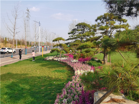自從沙潁河改造后,沿河步道蜿蜒曲折,微地形高低錯落,兩側(cè)栽有香樟、槐樹、雪松、石楠等喬灌木,碧桃、櫻花等彩色樹種夾雜其間,營造出河岸飄渺悠揚(yáng)的意境。