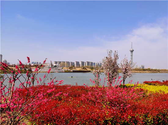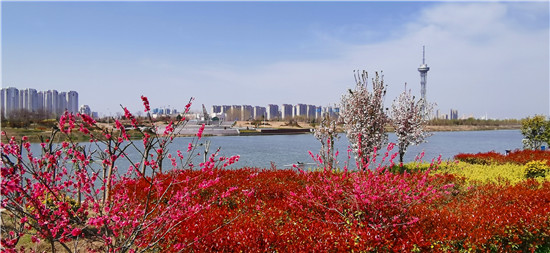 近日,在春花和藍(lán)天碧水映襯下,沙潁河兩岸桃花、海棠、石楠、櫻桃花競相綻放,沙潁河兩岸美如畫。