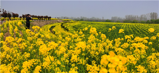 3月29日,商水縣鄧城鎮(zhèn)油菜花花開正盛。商水縣鄧城鎮(zhèn)沿沙河種植4000多畝黃色、粉色等多色油菜花,為沙河沿岸風(fēng)光增加了色彩,吸引了不少附近縣市群眾賞花游玩,同時(shí)也帶動(dòng)了養(yǎng)蜂、榨油等相關(guān)產(chǎn)業(yè)。
