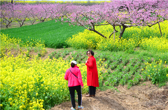 日前,游客在西華縣黃橋鄉(xiāng)裴莊村花開正盛的桃林里游玩。近年來,西華縣黃橋鄉(xiāng)因地制宜,大力發(fā)展“春賞桃花、秋賣果”農(nóng)旅經(jīng)濟,助推鄉(xiāng)村振興。①5