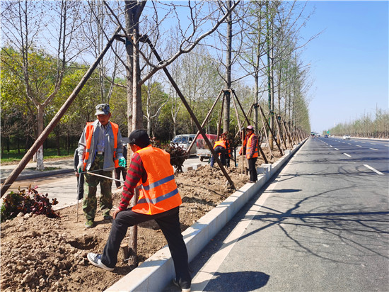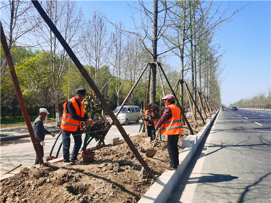 日前,氣溫回暖,春光明媚,正是種植樹木、養(yǎng)護(hù)苗木的好時(shí)節(jié)。連日來(lái),在周口大道北段,園林工人利用現(xiàn)在好時(shí)節(jié),忙于栽植各種樹木,建設(shè)綠化工程。