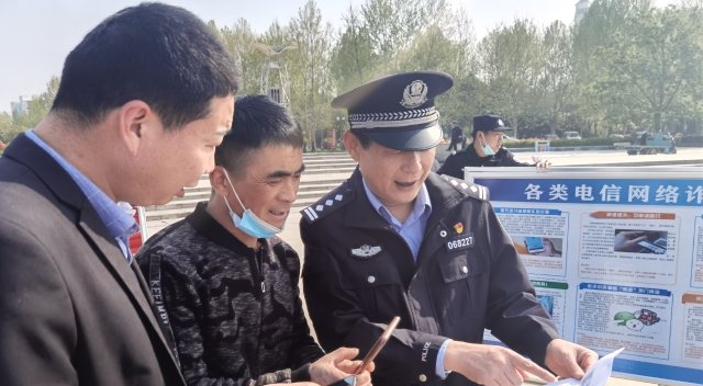 連日來(lái),鄲城縣公安局反詐宣傳如火如荼,民警王冰等奔走在各社區(qū)、商場(chǎng)、廣場(chǎng)、公園、街道、沿街商鋪,廣泛宣傳反詐常識(shí),推廣注冊(cè)金鐘罩,散發(fā)宣傳頁(yè),張貼宣傳通告,守護(hù)好群眾的“錢(qián)袋子”。