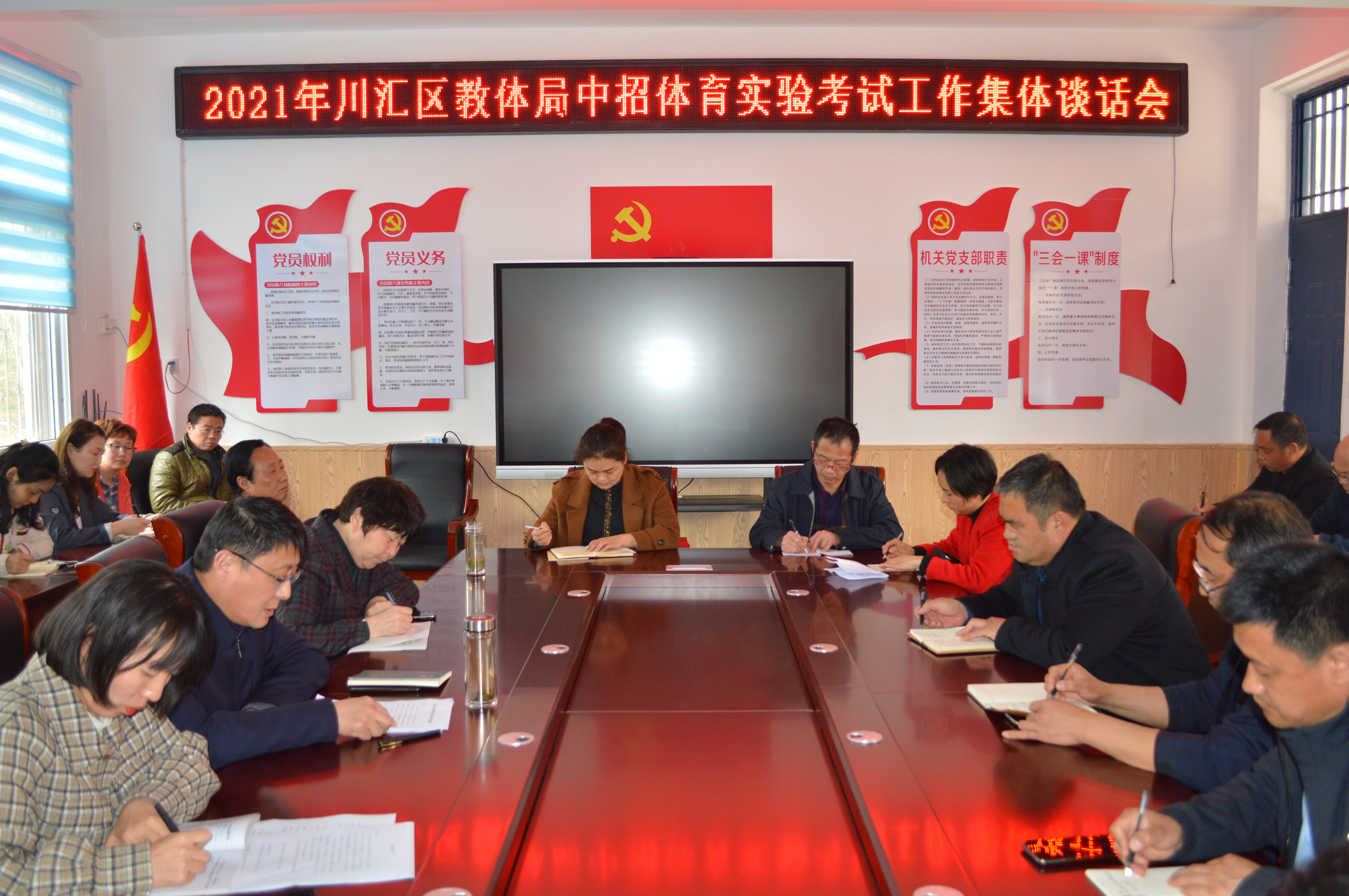 4月9日下午,川匯區(qū)教育體育局召開中招體育實驗考試集體談話會。派駐區(qū)教體局紀檢組組長許攀主持會議,區(qū)教體局黨組書記、局長徐德志進行黨風廉政談話,區(qū)教體局分管領導、考試負責人及考務人員、各中學校長參加會議。