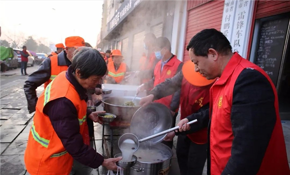 “謝謝黨和政府、工會組織對我們的關懷?!表棾鞘形拿髀窅坌闹辔萸?,環(huán)衛(wèi)工閆愛云端著剛剛盛好的暖心粥開心地說。