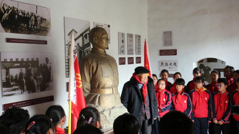 在全國上下掀起黨史學(xué)習(xí)教育熱潮之際,近日,來自吉鴻昌小學(xué)六(1)班的30名孩子,在學(xué)校少先隊輔導(dǎo)員的帶領(lǐng)下來到呂潭學(xué)校舊址,開展主題為“弘揚鴻昌精神、傳承紅色基因”的主題隊會活動,參觀了吉鴻昌學(xué)校和吉鴻昌故居,循著英雄的足跡,親身感受吉鴻昌精神的內(nèi)涵,接受一場紅色的精神洗禮。期間,在吉鴻昌將軍塑像前,何國志老人生動地講解了吉鴻昌將軍親手?jǐn)捞弥丁?chuàng)辦吉鴻昌學(xué)校、首次向中國人介紹電視等身前事跡,在場的孩子感動得熱淚盈眶。 “聽了何爺爺?shù)闹v述,我被吉鴻昌將軍的事跡深深感動,長大后也要成為一名像他一樣的人!”張晨曦同學(xué)說。
