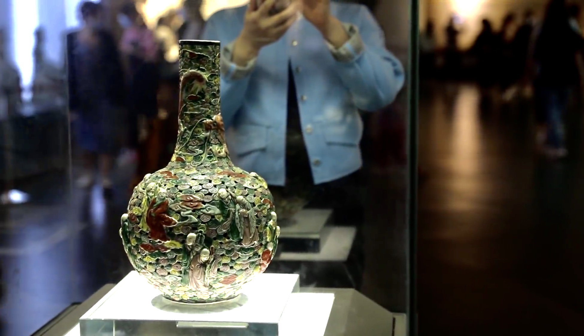 我的燒制工藝也是十分考究的,需要二次燒制才能形成完整瑰麗的玲瓏瓶。景德鎮(zhèn)的陶瓷專家先要使用圓雕的技法,用高能有機(jī)土勾勒出我圓鼓鼓的肚子,修長的脖頸,但此時(shí)我只是一個灰突突的瓶子站在火堆旁,等待定型。第一次燒制確定我形狀,我便開始“化妝”了,這是一個漫長的過程。十八羅漢那慈眉笑眼的神態(tài),蒼龍那曲折盤旋的角度,都是景德鎮(zhèn)專家們仔細(xì)打磨,一次次嘗試才能確定完成的。接著是上色,穿上“五彩衣服”后再次燒制,我才實(shí)現(xiàn)華麗變身,大家才能夠看到如此美麗有著異域風(fēng)格的五彩透雕十八羅漢云龍瓶,然后我被“護(hù)送”到清朝皇家大院,與琳瑯滿目的珍寶為伍。