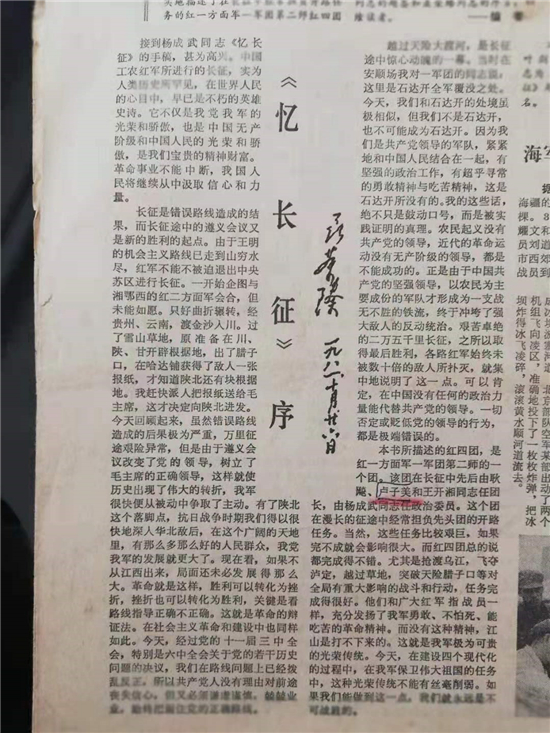 1982年3月16日,《人民日?qǐng)?bào)》《解放軍報(bào)》等報(bào)發(fā)表《憶長征》序言。