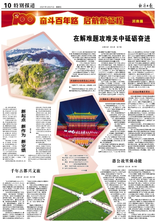 經(jīng)濟(jì)總量持續(xù)提升仍然是發(fā)展成就最有力的說(shuō)明。黨的十八大以來(lái),河南先后邁上3萬(wàn)億元、4萬(wàn)億元、5萬(wàn)億元三大臺(tái)階,2020年達(dá)到5.5萬(wàn)億元、連續(xù)17年穩(wěn)居全國(guó)第5位;三次產(chǎn)業(yè)結(jié)構(gòu)由2012年的12.1∶54.1∶33.8調(diào)整為2020年的9.7∶41.6∶48.7,服務(wù)業(yè)對(duì)經(jīng)濟(jì)增長(zhǎng)貢獻(xiàn)率達(dá)56.1%,成為經(jīng)濟(jì)增長(zhǎng)的主動(dòng)力。