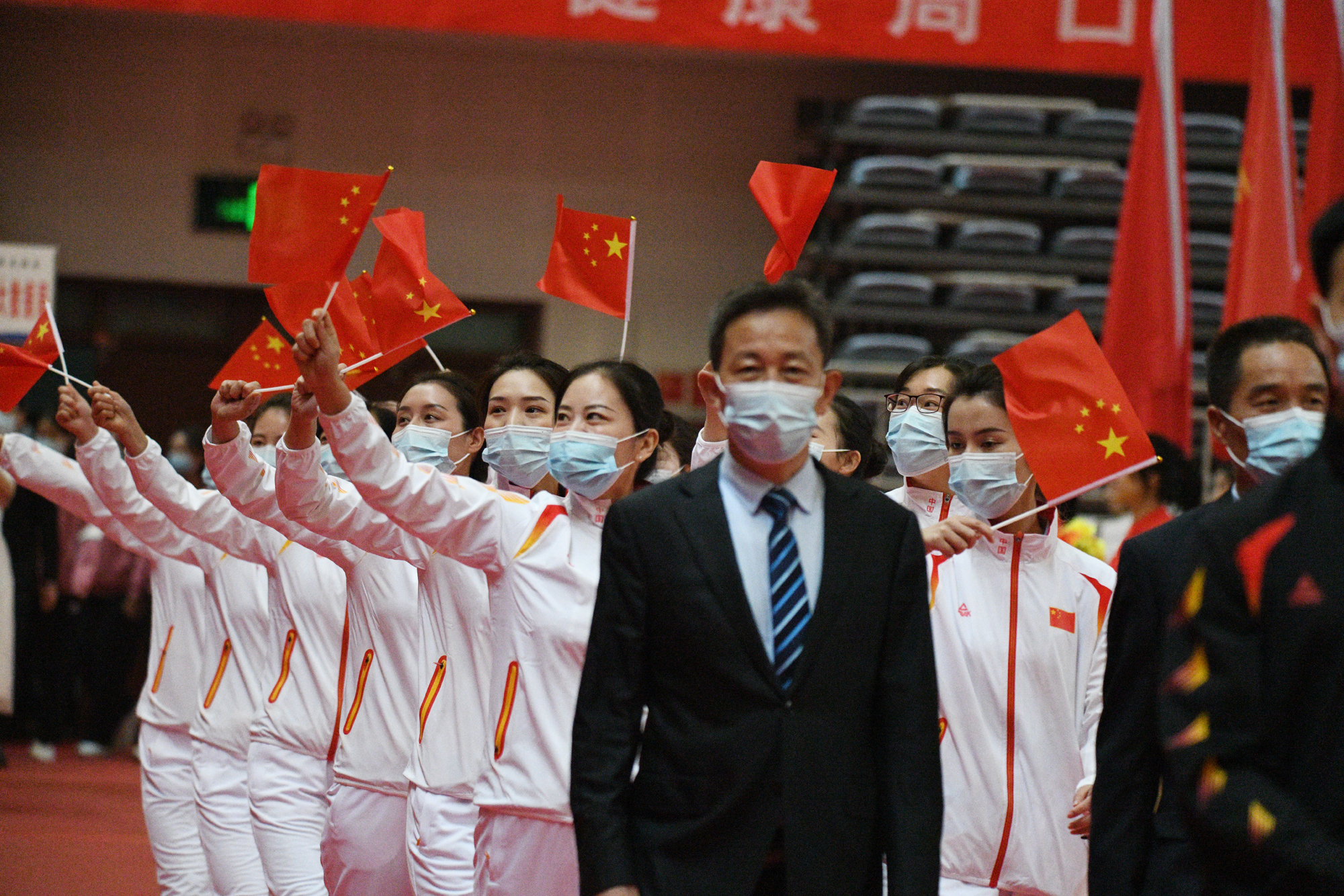 女運(yùn)動員們展示巾幗不讓須眉的奮進(jìn)精神