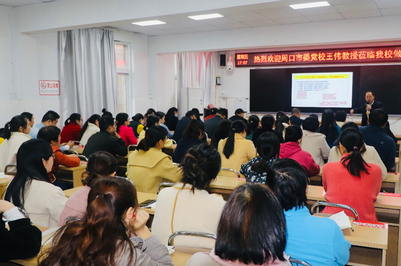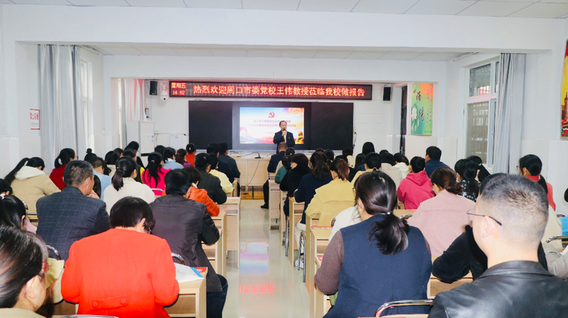 宣講會(huì)上,市委黨校宣講團(tuán)講師王偉以“深入學(xué)習(xí)貫徹市五次黨代會(huì)精神、開啟全面建設(shè)社會(huì)主義現(xiàn)代化周口新征程”為主題,從充分認(rèn)識(shí)市五次黨代會(huì)的重大意義、準(zhǔn)確把握市五次黨代會(huì)的精神要義、全面落實(shí)市五次黨代會(huì)的目標(biāo)任務(wù)三方面,詳盡解讀了市五次黨代會(huì)主旨報(bào)告的精神實(shí)質(zhì)和豐富內(nèi)涵。整場(chǎng)報(bào)告脈絡(luò)清晰、論述深刻、內(nèi)容豐富,既有深入淺出的理論闡述,又有結(jié)合我市發(fā)展的實(shí)例分析,更有教育實(shí)踐層面的對(duì)策思考,為該校教職工深入、完整、系統(tǒng)地領(lǐng)會(huì)市五次黨代會(huì)精神,有力推進(jìn)貫徹落實(shí)黨代會(huì)精神提供了一把“金鑰匙”。